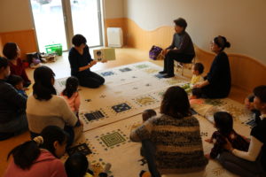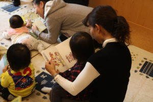 0~1.2歳のお子さんとその親御さん対象に「赤ちゃん絵本の読み聞かせ」や「わらべうた」を使ってふれあいながら楽しむ会「おひざでだっこ」を年2回担当しています。