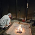 職員さんに火起こしをして頂き、古民家の雰囲気を体中に感じて気持ちの準備も整えながら聞き手の皆さまの御こしを待ちました。