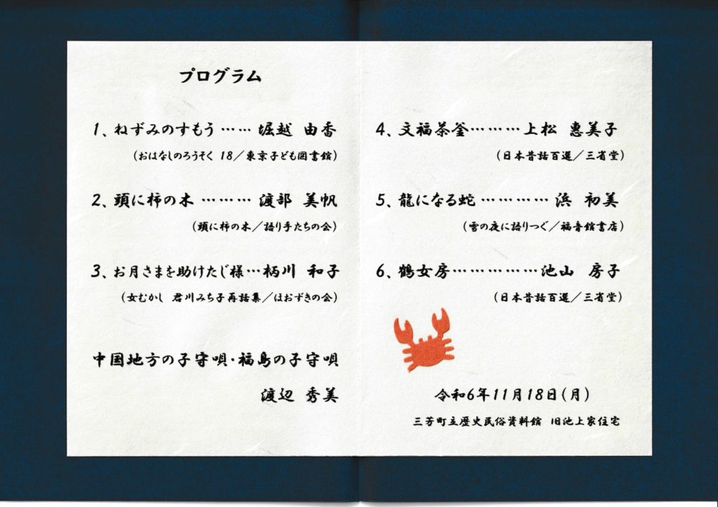 先日、三芳町おはなしサークル「かにかにこそこそ」30周年記念語りpart2